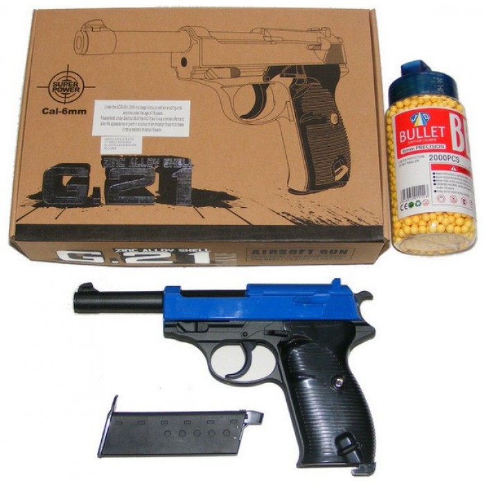 Galaxy G21 Spring Powered Blue Metal BB Gun Pistol (P38 Replica) & 2000 Pellets